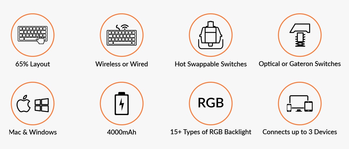 Crafted to maximize your workspace with an ergonomic design, while retaining all necessary multimedia and function keys. The hot-swappable version offers the freedom to easily personalize your typing experience without soldering.