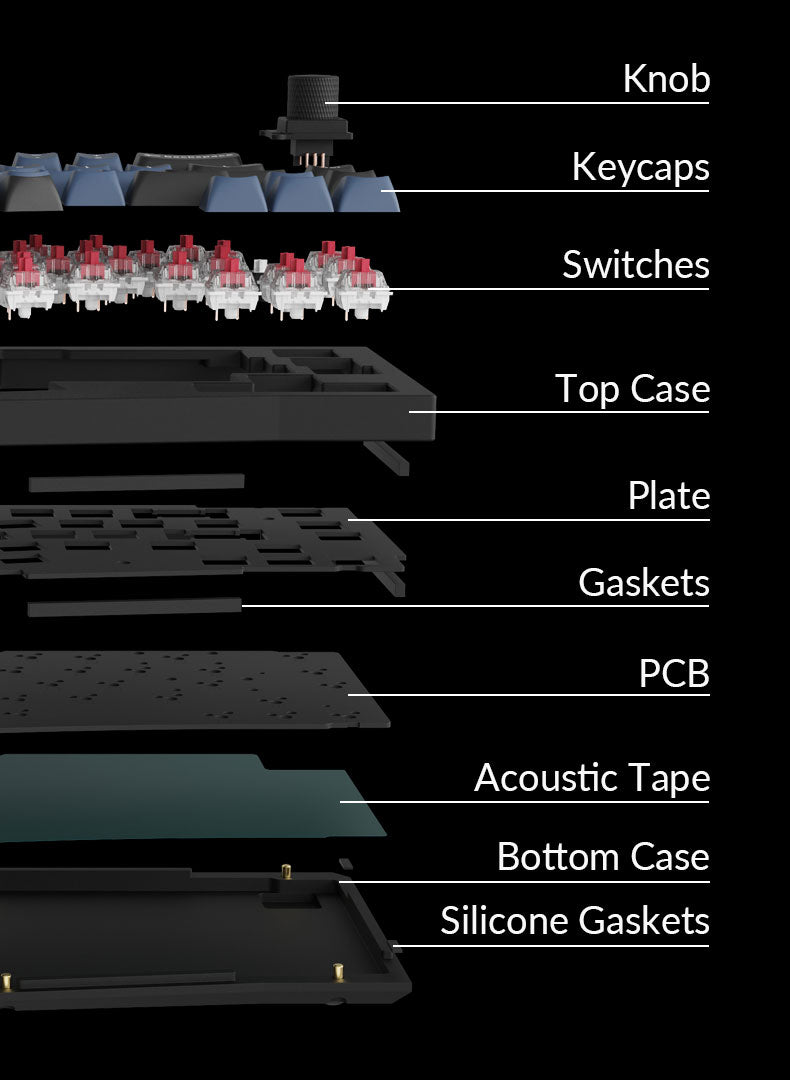 To build a fully customizable keyboard, we designed every component easily assembled. Therefore, you can customize and adjust each component you want.